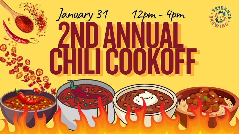 Get ready to bring the heat (or just eat it). 🍲 Our annual Chili Cook-Off returns on January 31st with better flow, and even more fun. 🎟️ TICKETS 🌶️ $10 to Compete (MUST BUY A TICKET FOR EACH ENTRY) Think your chili has what it takes? Enter your best recipe and compete for glory! Limited spots available. Tickets must be purchased through the link above. 🥄 $15 Tasting Tickets (MUST BE 21 OR OLDER TO BUY A TASTING TICKET) Not cooking? No problem. Taste a wide variety of chilis and vote for your favorites, then get a pint of any of our core beers with your ticket! 🎟️ Tasting Tickets available in the taproom on day of event. Tasters get 3 voting tickets to cast their votes and of course that point of one of our core beers! Winners take home bragging rights, prizes, and a place in Skydance Chili history. 🏆PRIZES🏆 1ST Place: $500 2ND Place: $100 Gift Card 3RD Place: $50 Gift Card 🕒 EVENT DETAILS • Blind judging • Clear tasting + voting flow • Dogs welcome on the patio only. Sorry, doggos, it’s shedding season!) 😉 Whether you’re cooking, tasting, or cheering loudly from the sidelines, this is one of our favorite events of the year. 🔥 Competition Spots are LIMITED — don’t wait!